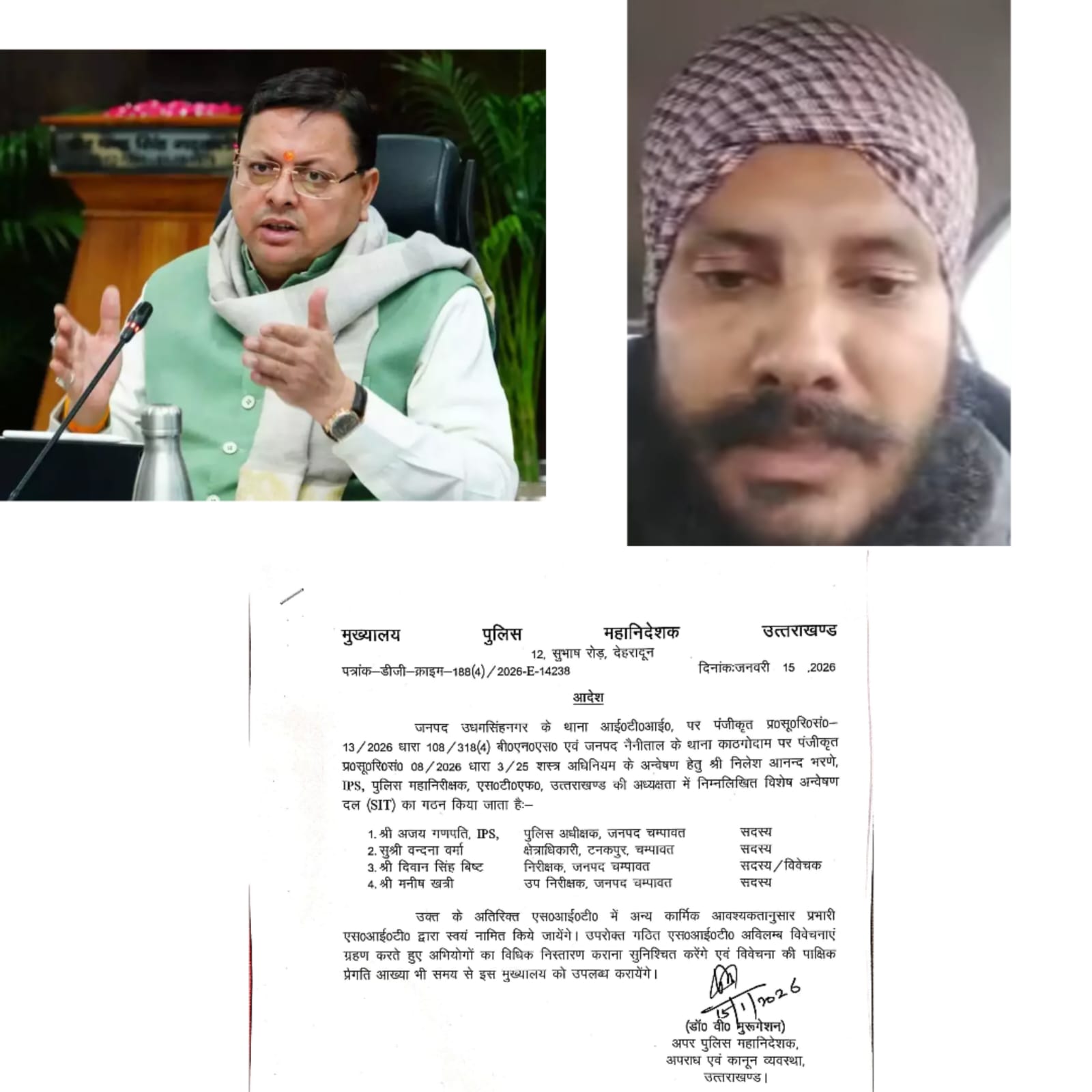 ▪️उक्त प्रकरण से सम्बन्धित अभियोगों की गहन विवेचना हेतु पुलिस महानिरीक्षक एसटीएफ श्री नीलेश आनन्द भरणे की अध्यक्षता में 5 सदस्यीय विशेष अन्वेषण दल (SIT) का गठन किया गया है। SIT में पुलिस अधीक्षक चम्पावत- श्री अजय गणपति, क्षेत्राधिकारी टनकपुर- सुश्री वन्दना वर्मा, निरीक्षक श्री दिवान सिंह बिष्ट, जनपद चम्पावत एवं उपनिरीक्षक श्री मनीष खत्री, जनपद चम्पावत को सम्मिलित किया गया है।