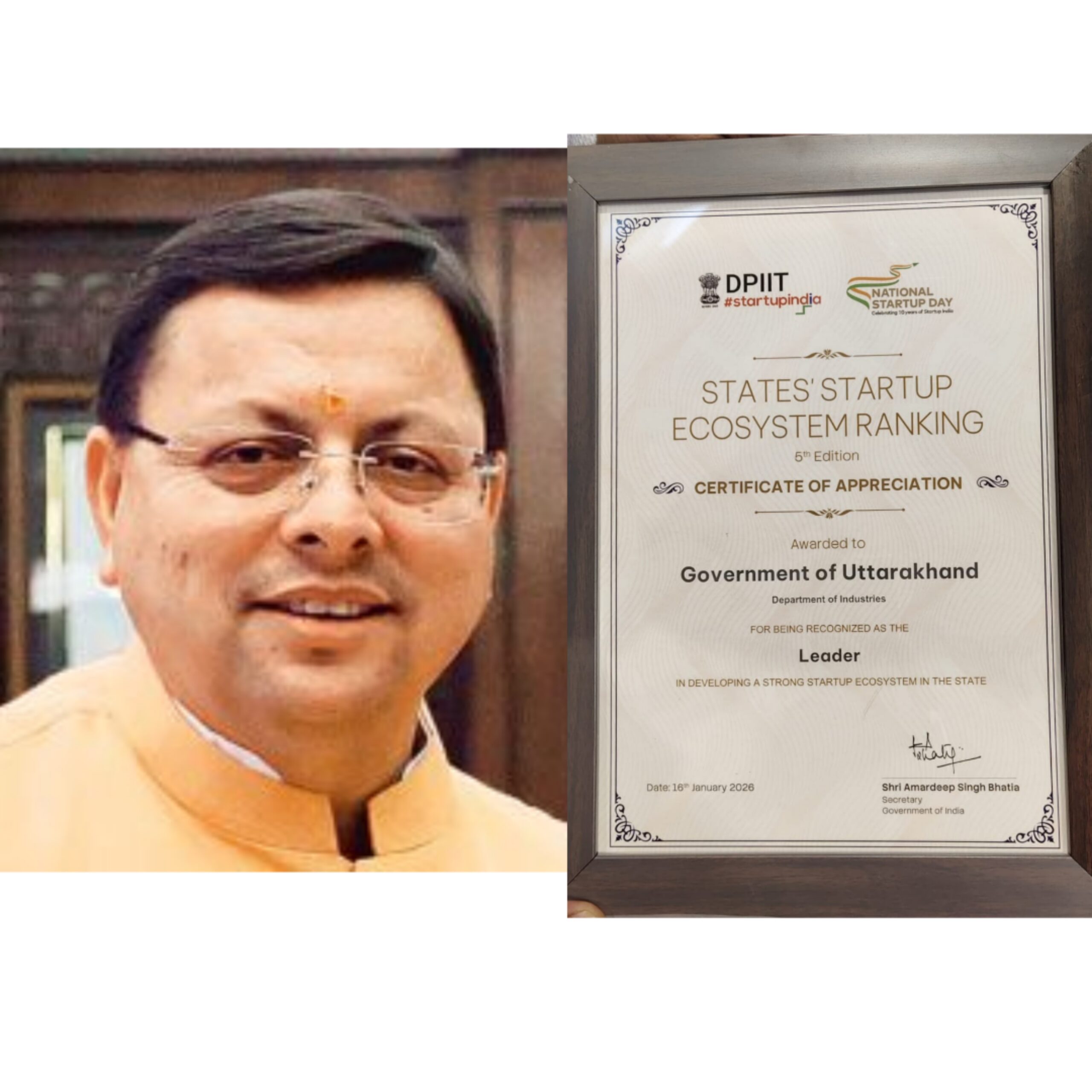 *यह सम्मान उत्तराखण्ड के लिए गर्व का विषय है। हमारी सरकार ने स्टार्टअप को बढ़ावा देने के लिए अनुकूल नीतियां, सरल प्रक्रियाएं और मजबूत इकोसिस्टम विकसित किया है। राज्य के युवाओं में नवाचार की अद्भुत क्षमता है और सरकार हर स्तर पर उन्हें सहयोग प्रदान कर रही है। यह उपलब्धि प्रदेश के सभी उद्यमियों, स्टार्टअप्स और अधिकारियों के सामूहिक प्रयास का परिणाम है।*