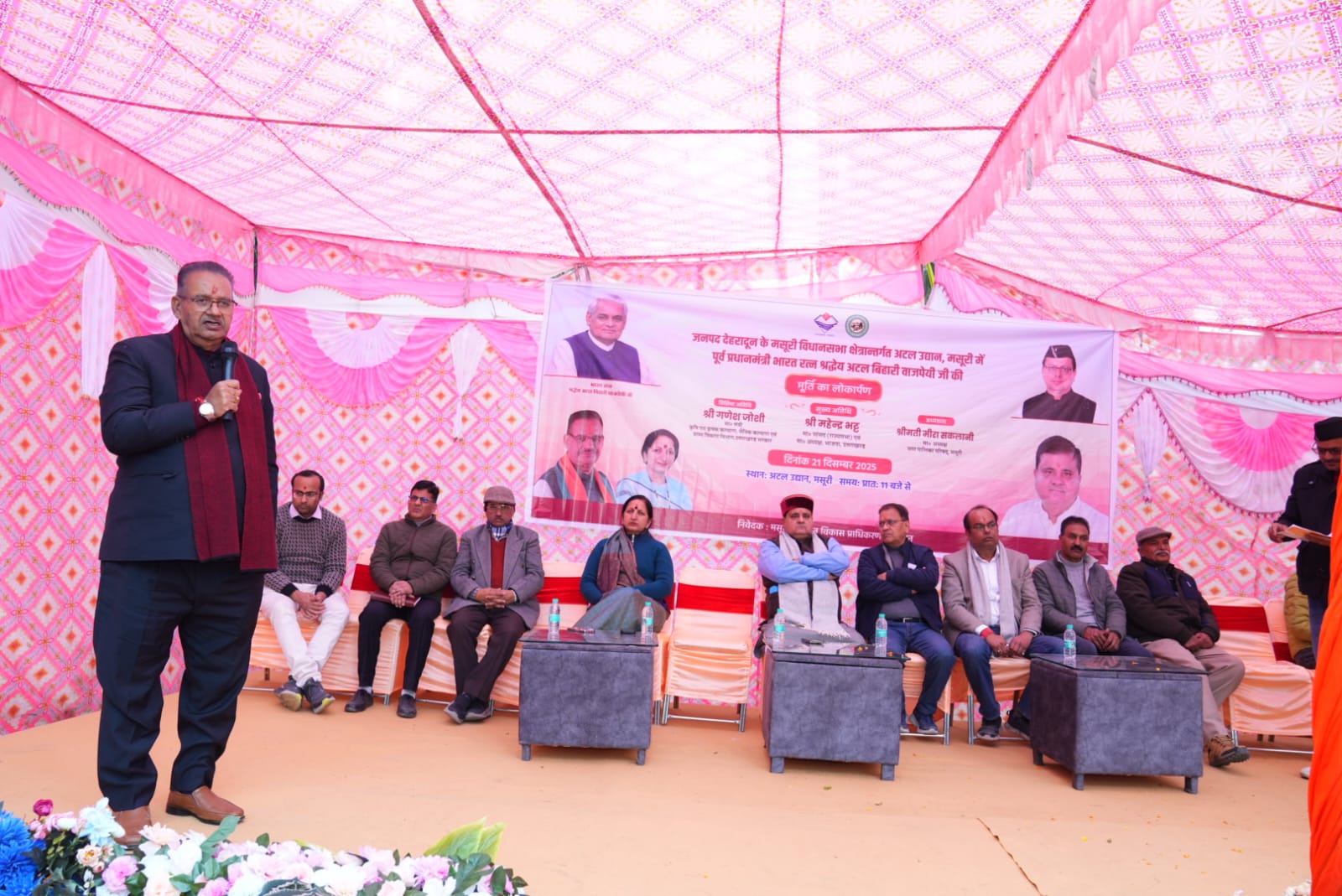 मसूरी, 21 दिसम्बर।कैबिनेट मंत्री गणेश जोशी ने आज मसूरी स्थित अटल उद्यान में भाजपा प्रदेश अध्यक्ष एवं राज्यसभा सांसद महेंद्र भट्ट की उपस्थिति में देश के पूर्व प्रधानमंत्री स्व. अटल बिहारी वाजपेयी की मूर्ति का विधिवत लोकार्पण किया।